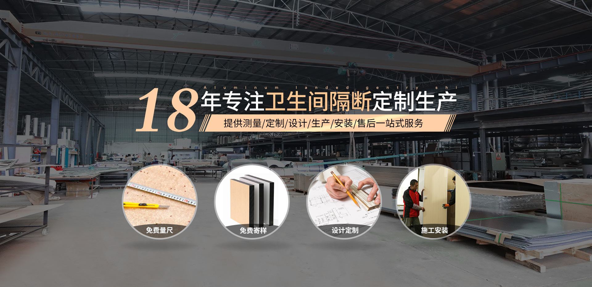18年致力于衛生間隔斷的研發生產,廠房占地15000m2,擁有鋁材、板材2條完善的自動化生產線,鋁材擠壓機、全自動淋膠機等進口設備;